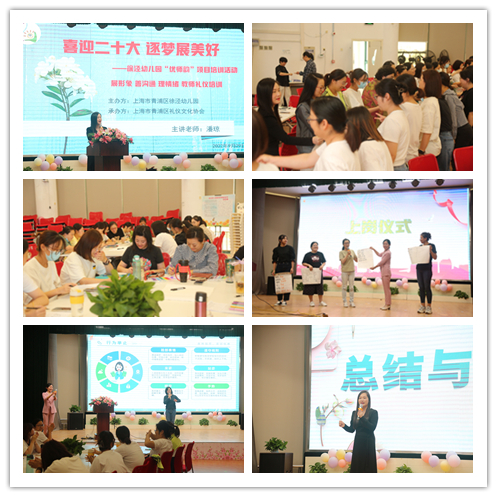 2022年9月29日中午,徐泾幼儿园开展“喜迎二十大 逐梦展美好”优师韵教师礼仪培训活动,活动由副园长潘慧老师主持,邀请由上海市青浦区礼仪文化协会会长潘琼老师主讲。