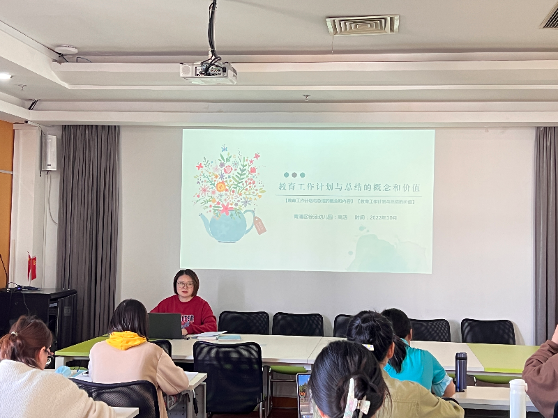 下午,徐泾幼儿园教学办高洁老师为见习教师讲解幼儿园教育工作计划和总结的涵义与特点,高老师指出,幼儿园教育工作应以幼儿发展为本,根据幼儿年龄特点、兴趣、需要制定符合并能推动幼儿在原有的基本经验基础上向前发展的计划,同时也要注意整合性与平衡性相结合,为每一个幼儿的健康成长提供适宜其自身发展需要的条件。相对应的,有了工作计划就要有工作总结,总结重点在于出经验、找规律;注意观点与案例相统一;注意事实求是。