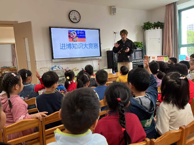 教师们通过谈话等活动,让孩子们初步了解进博知识,不仅如此,大班的孩子们,通过进博知识大竞赛,以这种别样的方式,丰富幼儿对于进博会的知识并开阔幼儿的国际视野。