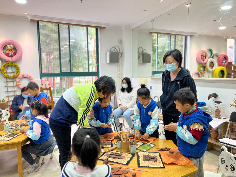针对户外体验体验活动,邵建明老师提出,丰富的活动形式有利于幼儿的发展,也将完成的陶艺作品,和幼儿的户外区域活动相结合,多方位促进幼儿的发展。同时,对于个别区域出现的专业问题,也进行了针对性的指导。副园长潘慧老师则从区域的设置方面出发提出了一些优化建议,将分散的区域进行更合理的布局,区域之间更联动,使得幼儿的区域活动更加丰富、有趣。