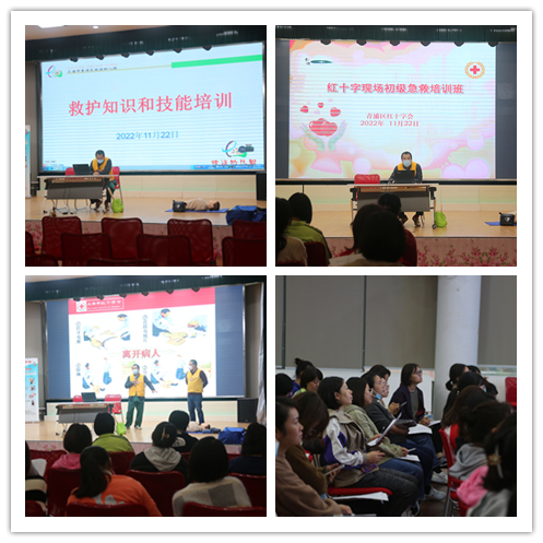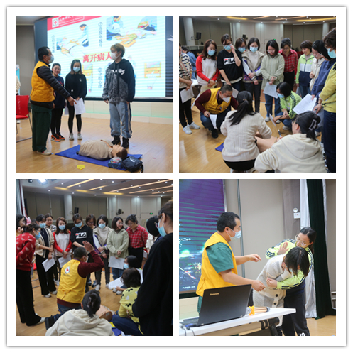 2022年11月22日,徐泾幼儿园开展了救护知识和技能专项培训活动。邀请上海市红十字会两位专业老师进行培训讲解。