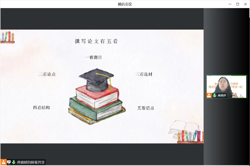 第二场次的培训由徐泾幼儿园龚盛妍老师为见习教师讲解如何写好教育论文。第一部分是对教育论文的理解。龚老师指出,撰写教育论文是教师从事教育教学工作的基本要求,可以帮助新教师提高教育研究水平,同时也是教师评优、晋升的需要。第二部分是撰写教育论文的常见问题以及论文写作的基本程序讲解。通过对三篇案例的分析和思考,明确了新教师撰写论文首先要端正态度,再学会审题、注重日常积累、做好写作准备、掌握写作技巧。在论文写作时遵循确定题目、拟定提纲、撰写初稿、反复修改的基本程序。总结出“没有一朵花,一开始就是一朵花”,新教师应该摆正心态、不断积累、在磨练中成长进步。