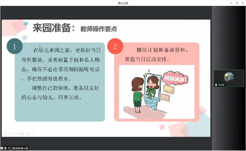 2022年12月16日,徐泾幼儿园见习规培基地开展了2022学年见习教师规范化培训的集中培训,本次活动以腾讯会议的方式进行。培训由见习教师规培基地工作管理负责人龚盛妍老师主持本次活动,徐幼基地11名2022学年见习教师参与了本次活动。培训分为两大部分: