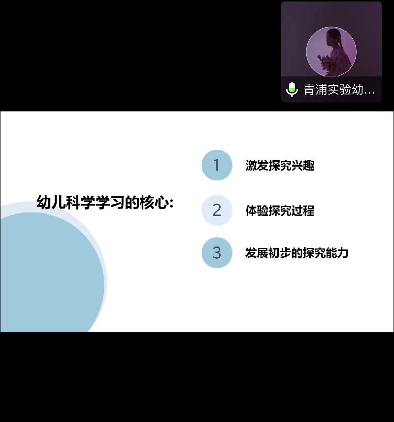 下午,青浦区实验幼儿园的周毅妮老师给新教师带来讲座《丰富幼儿活动经历的科学活动设计与实践》,让新教师更加容易理解科学活动的设计与实践。从幼儿科学学习的核心:激发幼儿探究兴趣、体验探究过程以及发展初步的探究能力这三点入手,通过生动形象的案例分享:大班科学活动“密室逃脱”和中班科学活动“有趣的叶子”,让新教师学习到如何围绕核心目标提供适宜的材料,体现科学活动的谨密性。另外,周老师为大家讲解了科学活动设计的要点,新教师们收获满满,对今后的科学活动也有了一定的方向和思考。