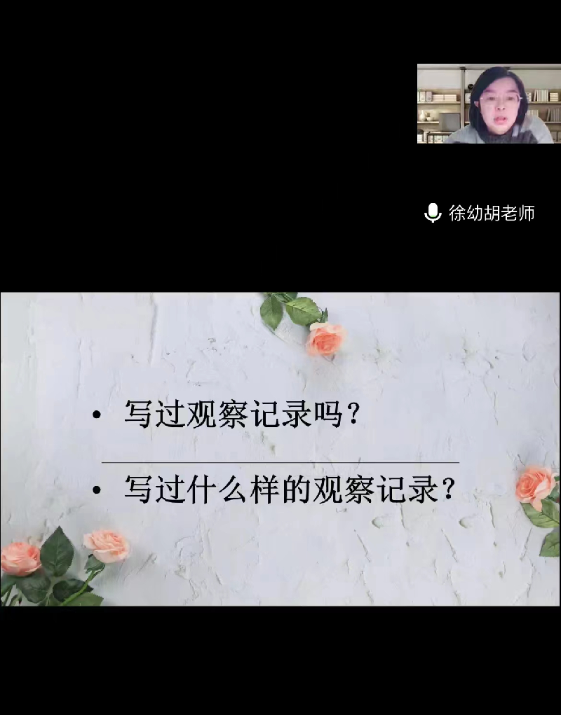 第二场培训由徐泾幼儿园胡怡老师为见习教师讲解幼儿园教师的观察记录写作,观察是教师对儿童行为的观察和记录,通过识别和记录幼儿的行为来评价幼儿成长和发展的评价手段。观察的价值就在于有利于教师深化对幼儿的理解;有利于教师的反思并提高教师支持幼儿和指导幼儿的水平;观察记录是教师的一项基本技能。要想做好观察记录,就要客观真实地记录幼儿的行为;采用多种有效手段来提高记录观察的效果;要形成良好的心态,养成长期观察记录的习惯。