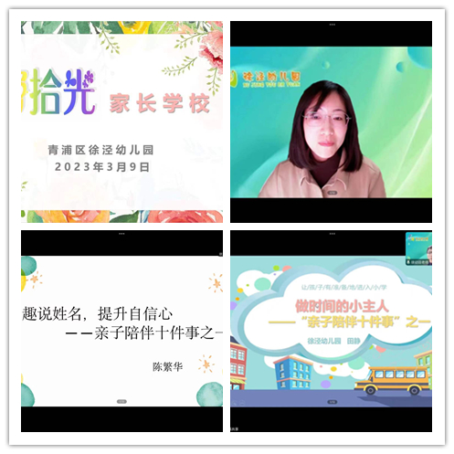 为了帮助大班幼儿家长做好幼小衔接工作,为幼儿尽快适应小学生活打下基础,提高家长家庭指导能力,2023年3月9日晚上,徐泾幼儿园开展“美好拾光”大班家长学校活动。本次活动以腾讯会议的方式进行,徐泾幼儿园教学办李莉老师主持,徐泾幼儿园大班全体幼儿家长参与了本次活动。本次活动邀请了徐泾幼儿园两位经验教师开展讲座。