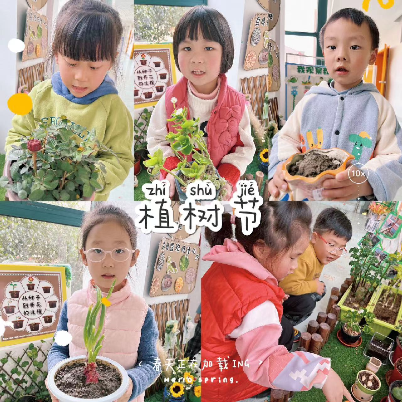 为了让孩子们进一步亲近大自然、体验劳动的乐趣、感受美化环境的意义,明确保护环境的责任,2023年3月徐泾幼儿园各班级开展“手‘植’春天,共‘树’美好”植树节主题活动。