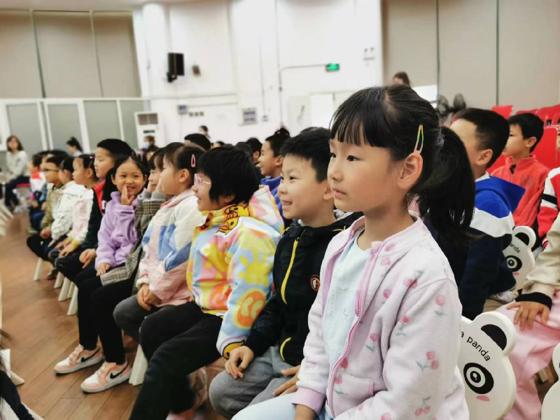 小班、中班、大班的孩子们在老师的引导下,按照秩序,井然有序地坐下,安静、投入地观看有趣的表演,俨然一个个可爱文明的小观众。