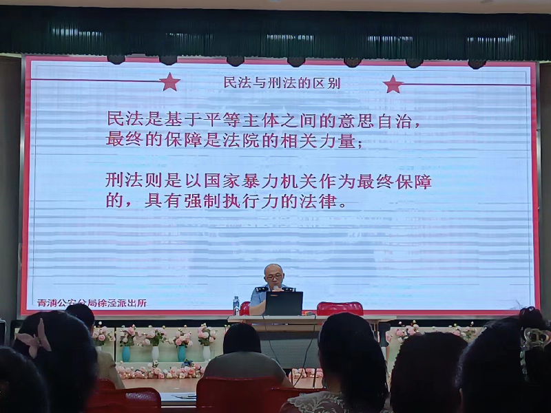 为进一步普及法律知识,增强教职工法律意识,6月30日下午,徐泾幼儿园邀请了徐泾派出所王志颖警官开展了民法典知识讲座。