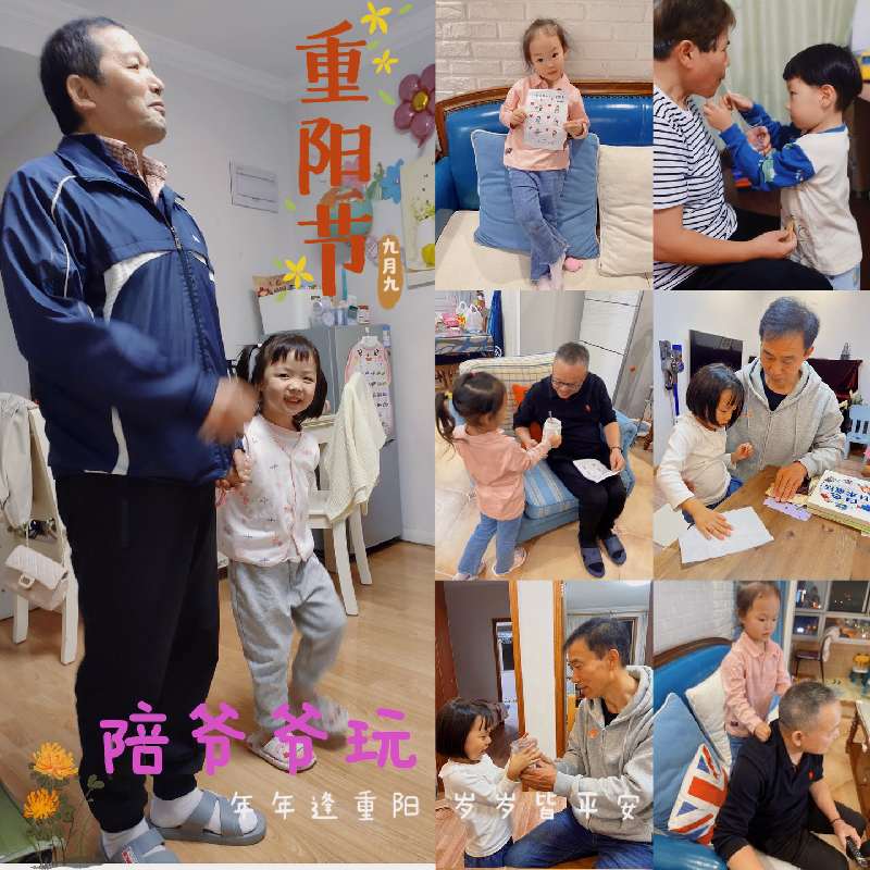 重阳节又称“老人节”,尊老、爱老、敬老是我们中华民族的传统美德,在家给爷爷奶奶捶背、倒水、做小家务,认识亲情关系,感受责任,乐意表达付出,懂得感恩。孩子们通过自己的方式把爱传播出去,让传统文化得到传承与发展。