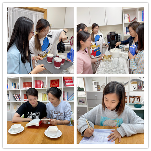 品咖啡,欣赏美文。制作咖啡,品味香醇咖啡之韵,感受美文,感悟人生。品奶茶,愉悦身心。奶与茶的完美融合,茶香四溢,奶味浓厚,品一口唇齿留香,此时或畅聊幼儿故事,或于笔画间里钟情翰墨,心情放松,身心愉悦。