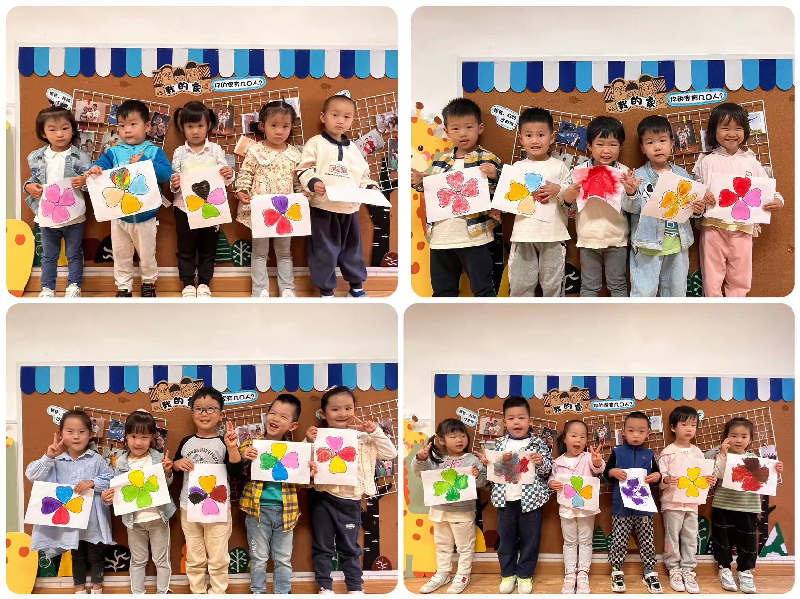 瞧,徐幼萌娃们亲手制作了四叶草。有的画、有的剪、有的贴,带着美好寓意的四叶草,来到了我们的身边。仔细看哦,可爱的进宝手里也有一株四叶草,形似国家会展中心的主体造型。让我们一起带着四叶草,带着美好的祝福与愿景,共同祝愿进博会能够圆满、顺利召开。