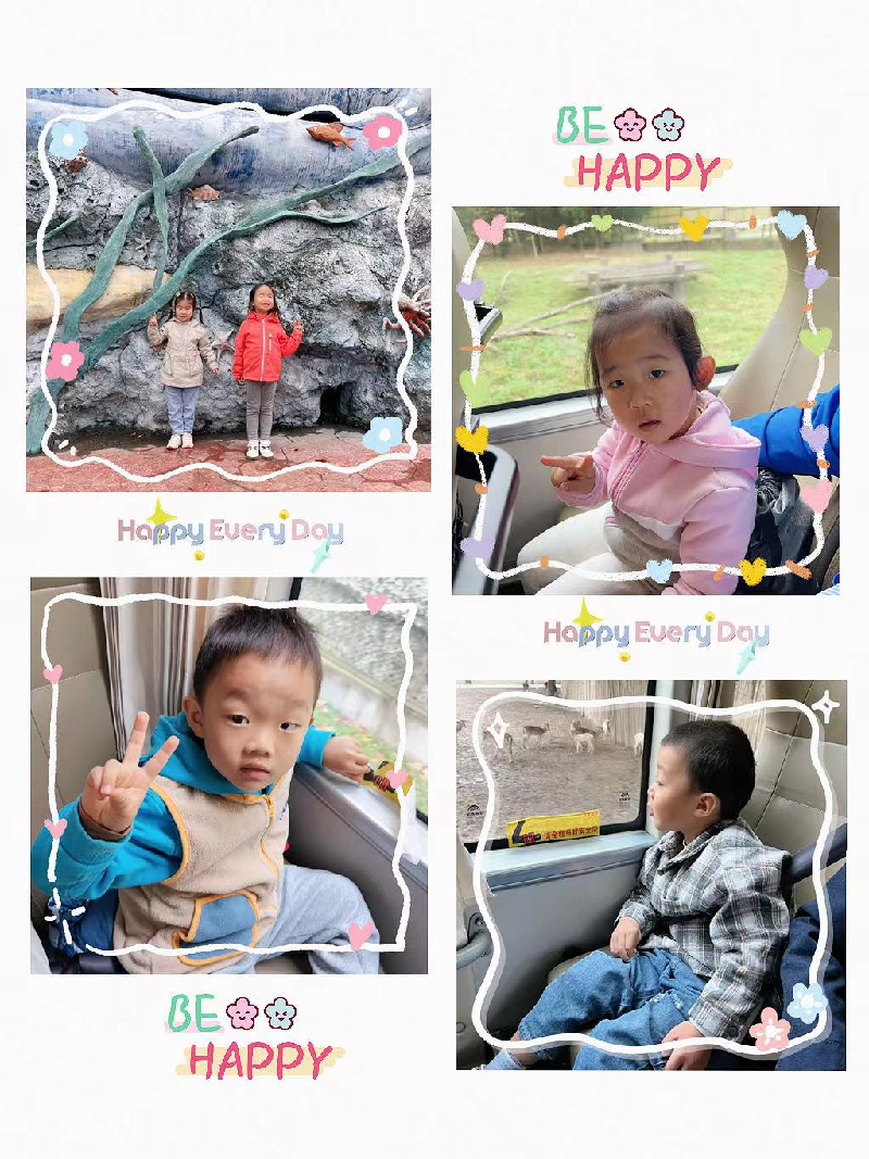 孩子们整装待发,坐上期待已久的大巴车,一路上我们欢歌笑语,带着美好的期许和对动物的喜爱,开启愉快的旅程!