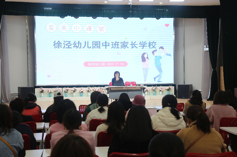 2023年11月16日下午,徐泾幼儿园开展“至美小课堂”中班家长学校活动。本次活动由徐泾幼儿园教学办副主任胡怡老师主持,邀请徐幼2位家庭教育指导讲师主讲,徐泾幼儿园中班幼儿家长参与了本次活动。
