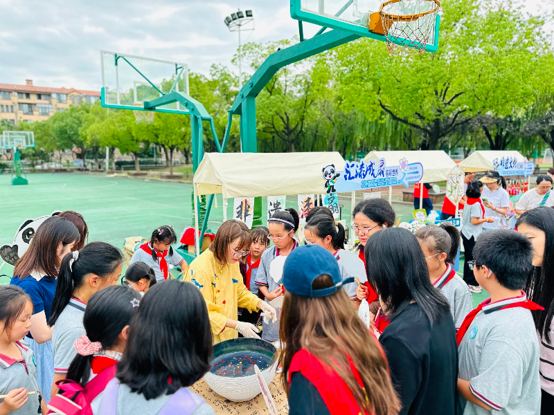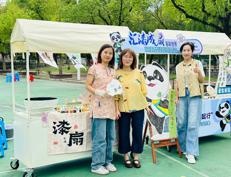为持续放大中国国际进口博览会的溢出效应,助力第八届进博会成功举办,展现青浦作为进博会永久举办地的城市魅力与软实力,2025年10月17日下午,徐泾幼儿园党支部在崧泽学校组织开展了“汇漆成扇,容彩世界”进博公益市集主题党日活动。