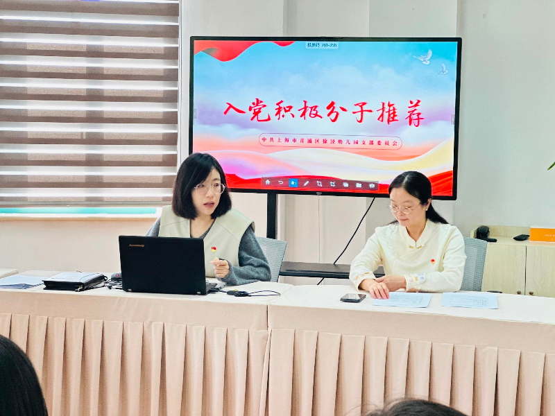 为切实做好党员发展工作,提高党员发展质量,努力保持基层党组织的生机与活力。首先,进行了入党积极分子民主推荐,全体党员参加了本次推荐会,会议由支部副书记李老师主持。李老师介绍了徐泾幼儿园的入党申请者的基本情况,与会党员对入党申请人能否推荐入党积极分子发表意见并进行讨论,大家畅所欲言,对相关申请人的工作及表现给予肯定。在充分讨论的基础上,党员采取了无记名投票的方式进行表决。