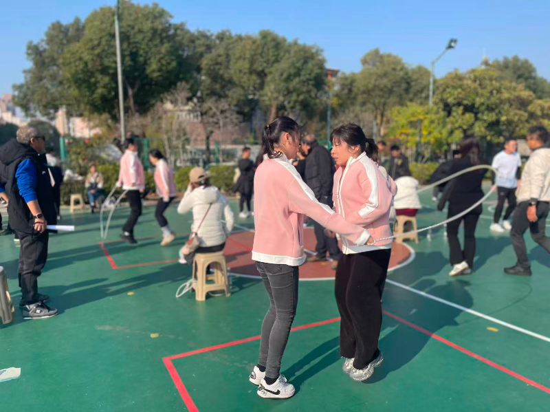 两人一心,默契与节奏是关键!随着裁判一声令下,老师们奋力甩动绳子,脚下步伐轻快有力。绳子每一次快速的旋转,都充满了技巧和耐力,让我们为你们的精彩表现喝彩。