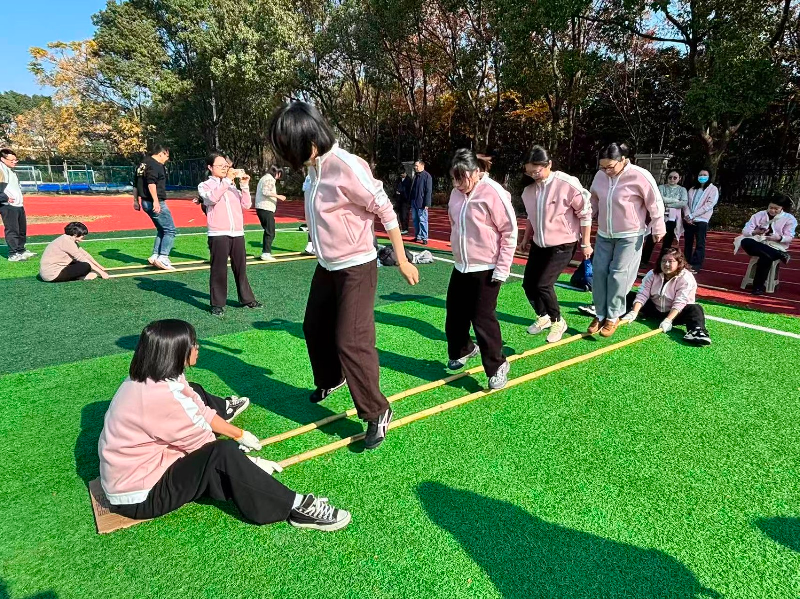 听,那清脆的竹竿敲击声!看,那灵动的身影在开合间跳跃。这是一项考验团队成员的协调性、合作性和体力的项目。大家口号洪亮清晰,在竹竿一开一合之间,动作整齐娴熟,齐心协作,步伐一致,“夹”缝中求胜!